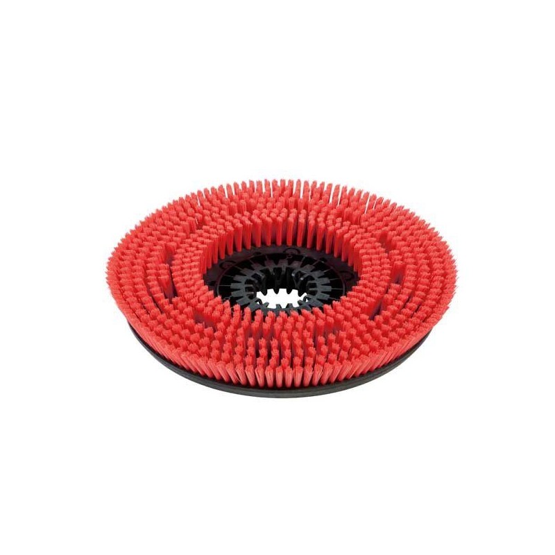 Czerwona, uniwersalna szczotka tarczowa do czyszczenia zasadniczego wszystkich rodzajów podłóg. Standardowo z głowicą D 43.