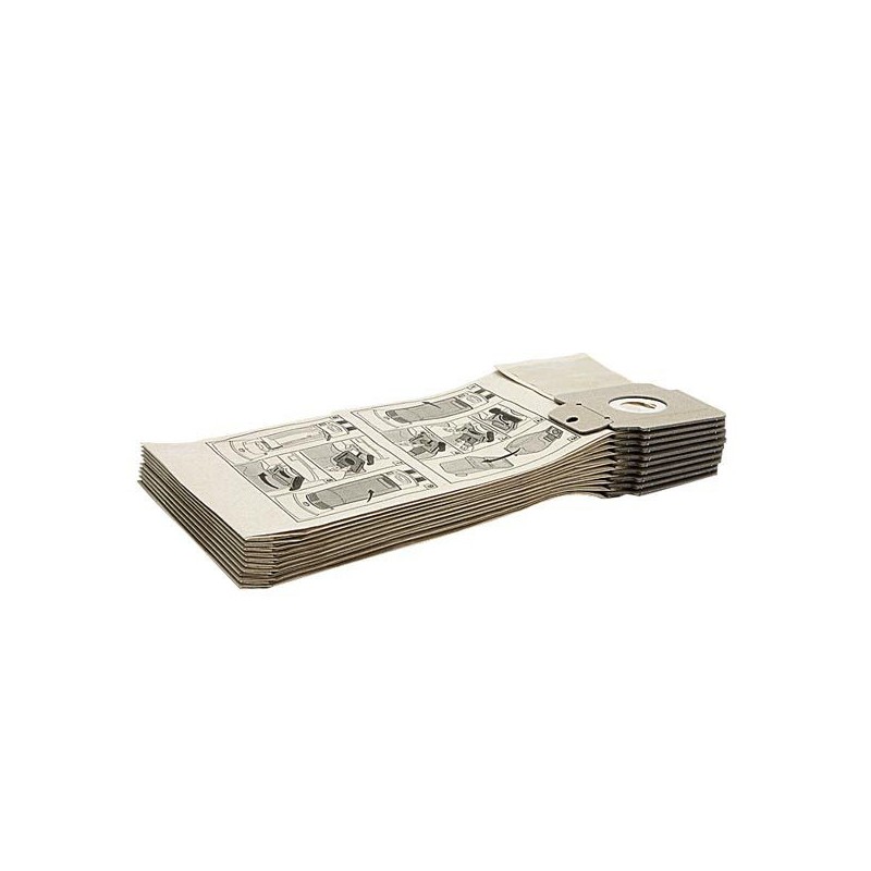 Trójwarstwowe, papierowe torebki filtracyjne z aprobatą BIA-C, klasa pyłu M. Specjalnie wzmocnione, odporne na rozdarcia. W opakowaniu 10 sztuk. Dostępna również w wersji z 300 sztukami (nr. katalogowy: 6.904-303.0).